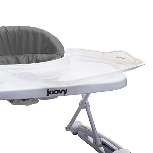 Super sized tray with removable, dishwasher-safe tray insert. Folds flat for easy, compact storage and travel Seat pad is supportive and comfortable, machine washable; Easy to clean with no cracks and crevices. Three height positions, swivel front wheels and non-slip stair pads Maximum child weight:30 lbs, maximum child height: 33.5 in, inseam between 6.5-8.5 inches; BPA, PVC and Phthalate free Walker meets highchair. The spoon walker combines these two essential products into one to provide the perfect balance of eating, playing and learning to walk. Practical and good looking, the spoon will blend perfectly into your kitchen and home decor. For meal and snack time, the spoon comes with a super-sized tray that has a removable insert that can be wiped clean or put in the dishwasher for convenience. Once mealtime is over, there is lots of room for play. The extra-large tray has plenty of room for all your child's favorite toys. The bright white color and high gloss finish give the spoon premium styling that cleans up easily. As your child learns to master walking, you will feel confident using the spoon with its ultra-wide base that provides unparalleled strength, stability, mobility and safety. The wide base ensures that little fingers won't get pinched on the side of the tray if your toddler bumps into a wall. The seat pad is supportive and comfortable, machine washable, and is made with 600D material combining luggage grade toughness with a soft and padded high seat back. Never use near stairs, steps or thresholds. Use only on flat surfaces free of objects that could cause the walker to tip over. The product works with inseam between 6.5 - 8.5 inches.